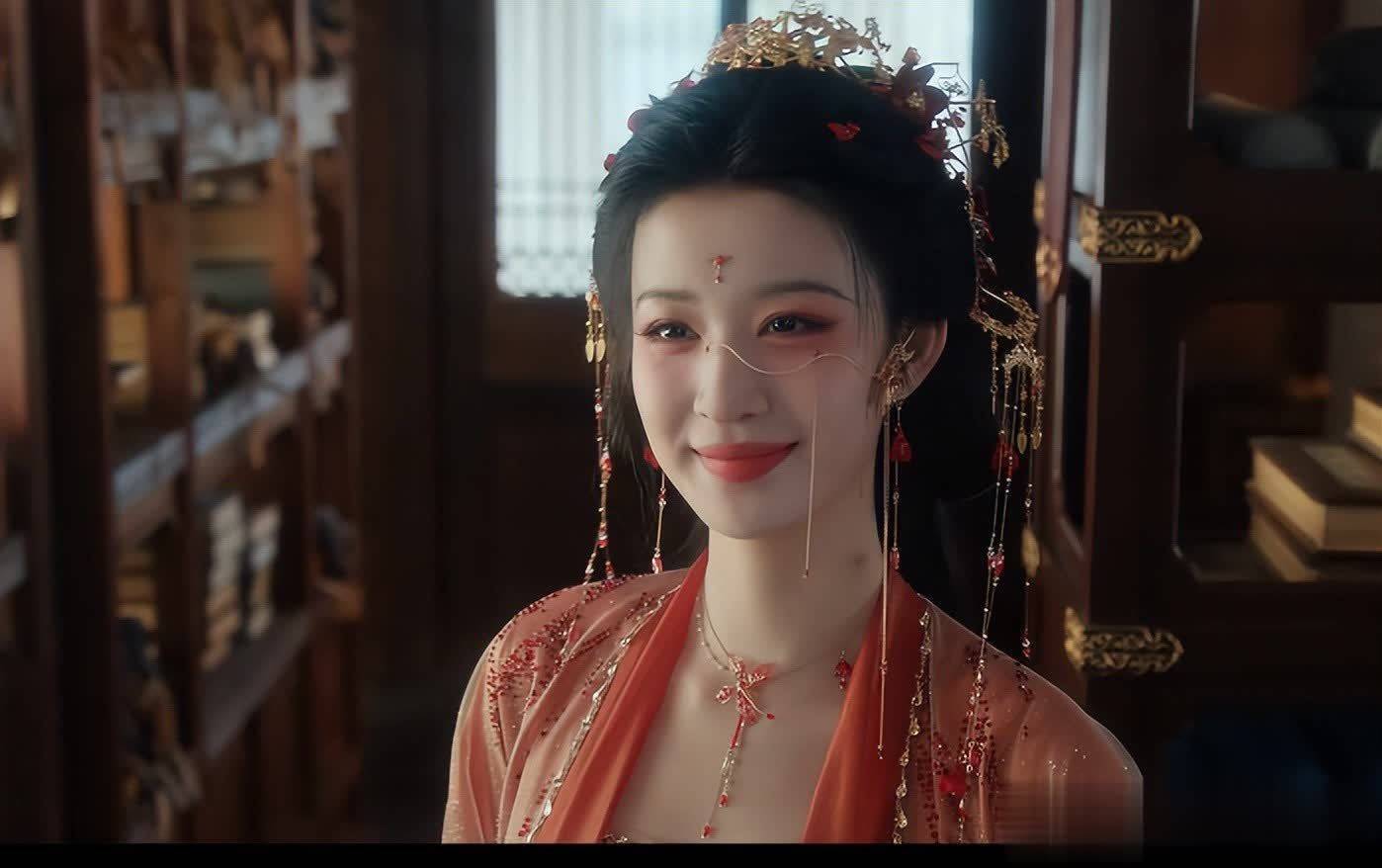 王楚然的长相,属于很端庄的一种,再加上花里花哨的配饰后,既有妖妃的感觉、但睿智的大脑也没丢失,视觉上不赖。