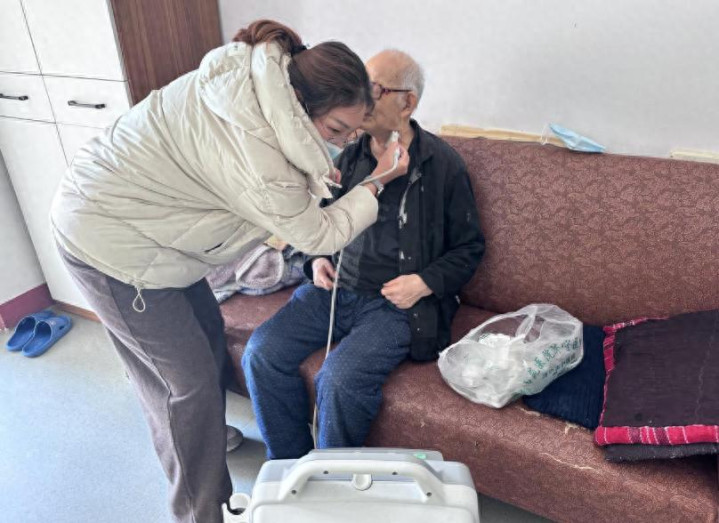 军人退役事务局的医护人员携带便携式医疗设备,为抗美援朝退役老兵进行了血压、血糖、心电图、血检等项目的检查,并详细询问身体状况、既往病史和用药情况,耐心解答他们的健康咨询,针对退役老兵的身体状况给出个性化的健康指导和建议。